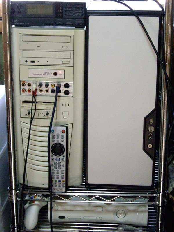 PC棚の現況。左機のリモコンと受光部が今回の内容。
