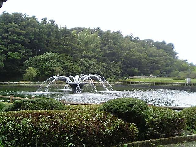 そんなこんなで公園に到着。昔はただのため池だと思ってたのに、堂々と公園名乗ってるし、ちゃんと整備されてる。つか水たまりに噴水がついてる。