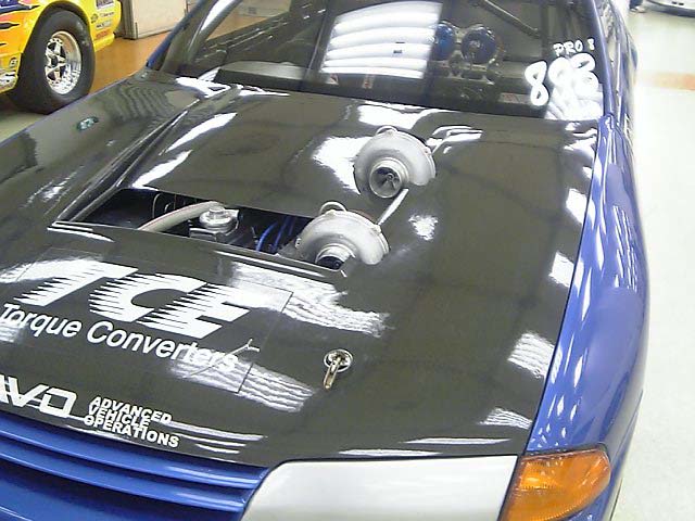 で、内容は、なんかドラッグカーの展示が多かった。あとはパーツがちょこちょこと。説明会みたいのやってたから、チューナー向けなのかな。つーかストリート向けじゃないし、NA車向けでもない。割り切った車ばっかりだから、ボンネットの上にタービンが出っ張ってたりして笑える。