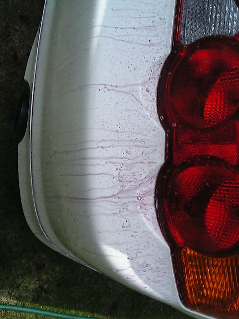 こいつはボディにもかけられる、というか、むしろそっちがメインぽいものなので、洗車して吹きかけてみた。このやたら天気の良い日に。