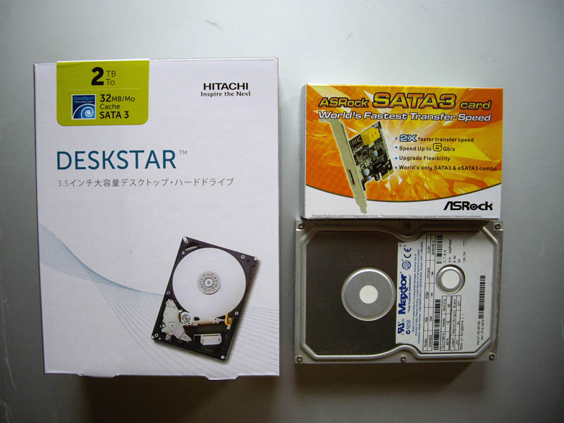 Maxtorの3.5HDDはサイズ比較用。